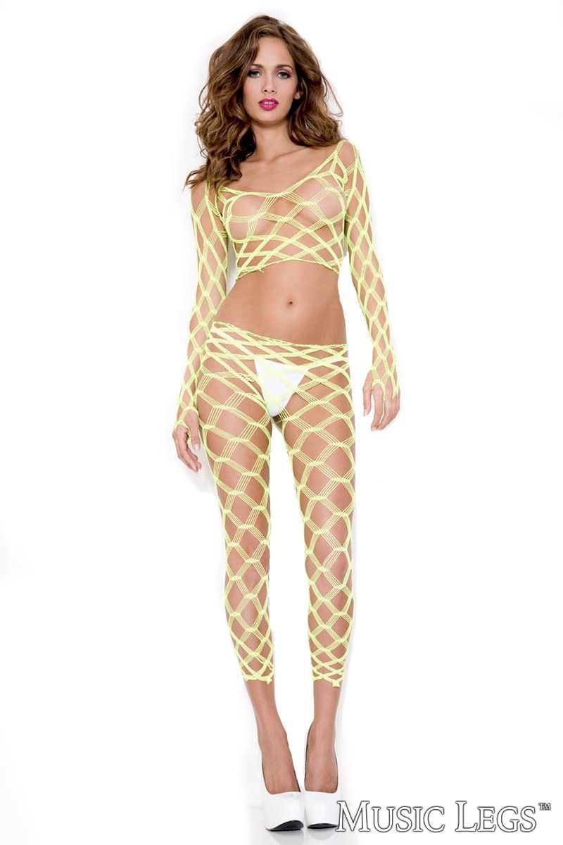 Fishnet Sleeve Top, Footless Tights